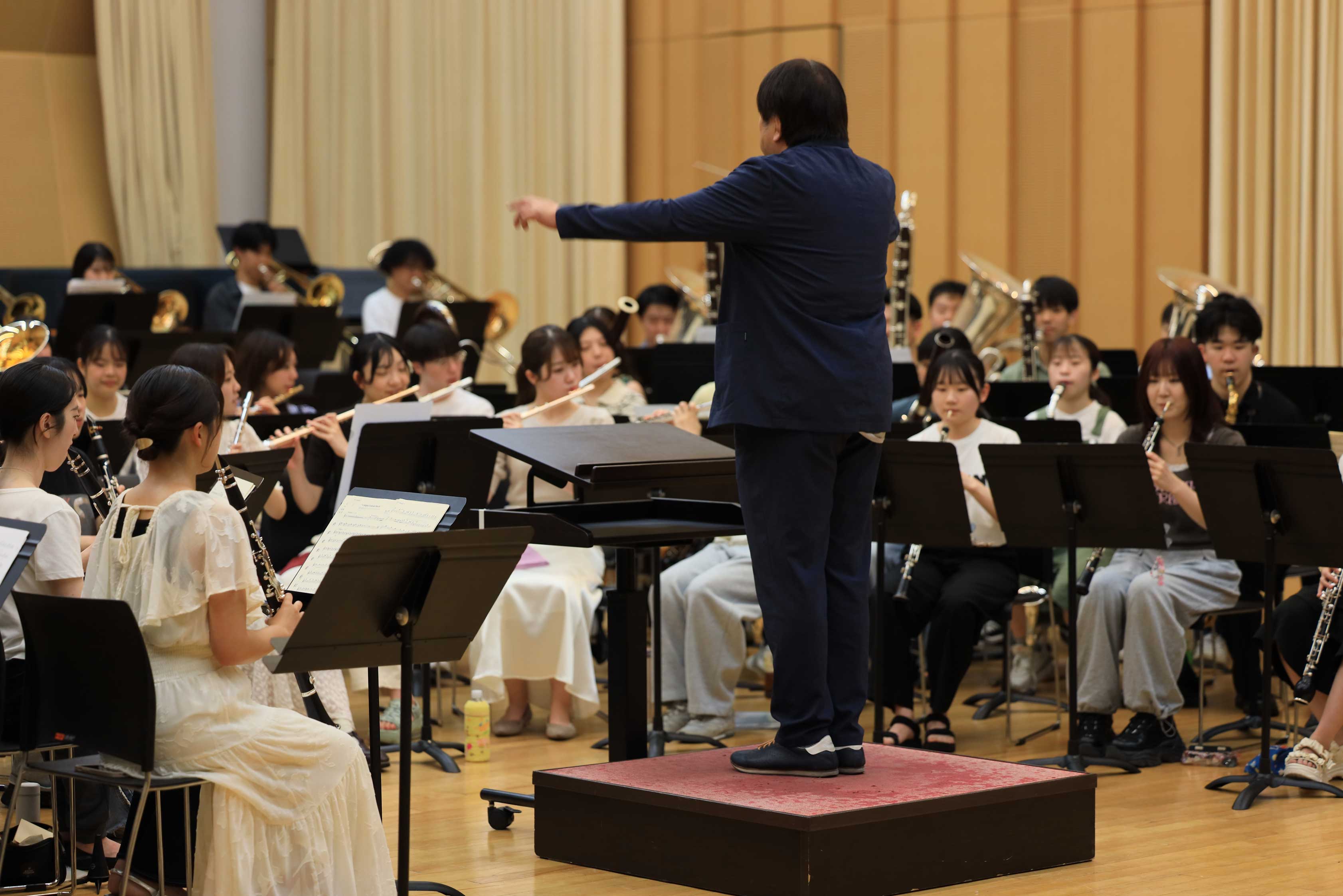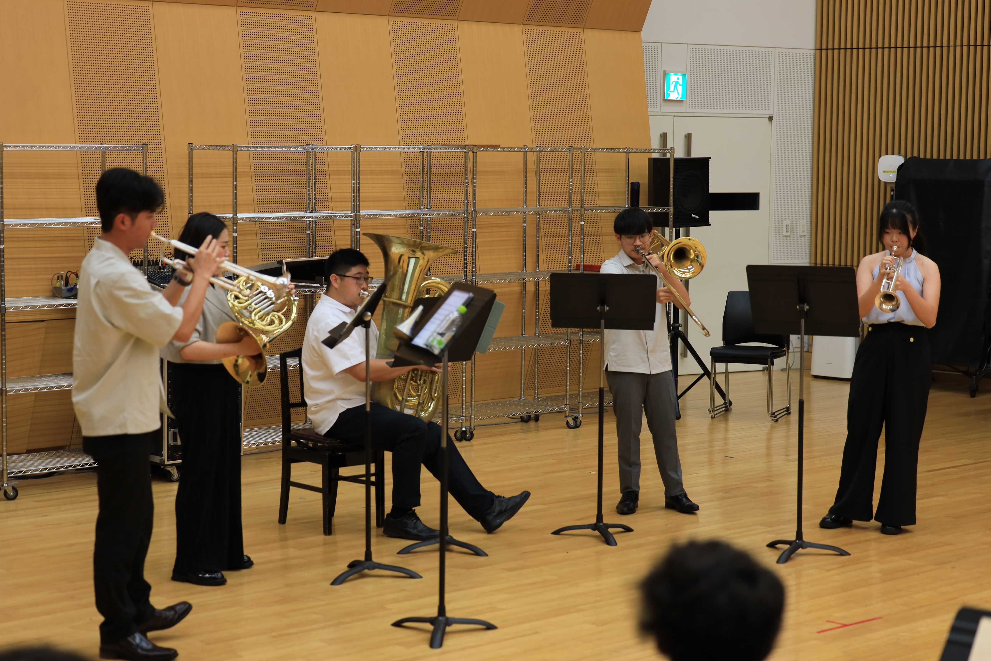 続く7月10日には、本学のオーケストラスタジオにて、井手副学長の指揮によるブラスオルケスターの歓迎演奏が行われました。