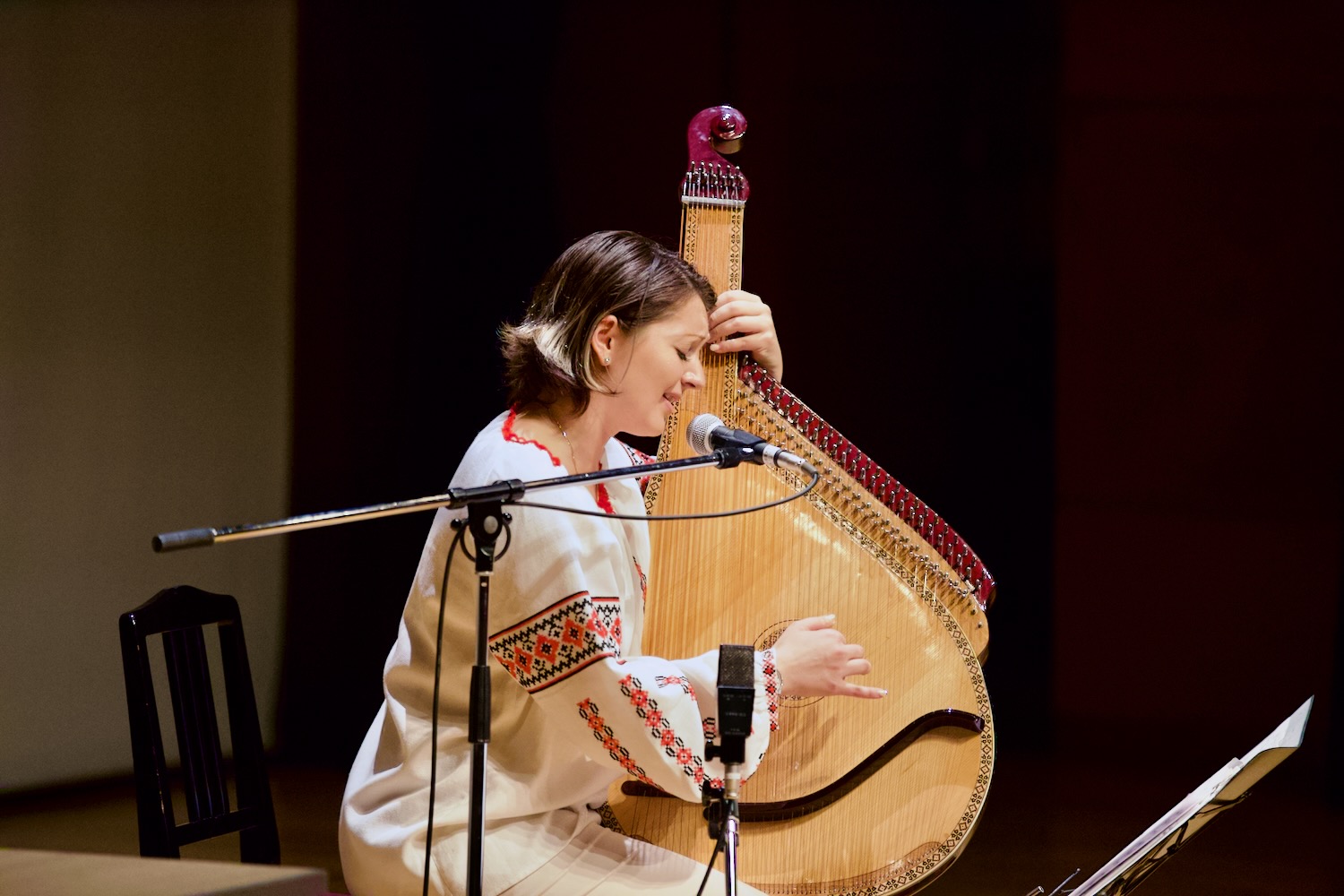 本学の必修科目のひとつ「音楽文化論」にて、ウクライナの民族楽器「バンドゥーラ」の奏者として日本で活動されているカテリーナさんによる特別授業が行われました。ウクライナの音楽事情、バンドゥーラの演奏など、平和への願いとウクライナの豊かな音楽文化を知るきっかけとなる授業の様子をレポートします。