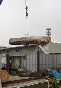 一方,大きな丸太は学内で処理することができませんので,そのまま製材工場に運び出します。